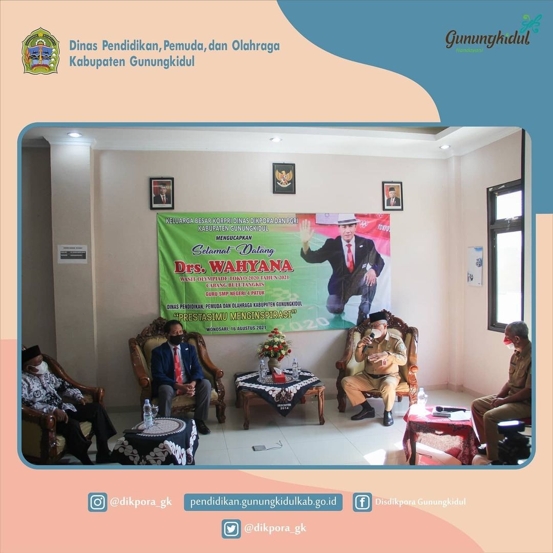 WONOSERI- Dinas Pendidikan, Pemuda, dan Olahraga (Disdikpora) Kabupaten Gunungkidul mengadakan kegiatan Penyambutan Wasit Olimpiade Tokyo Drs. Wahyana Guru SMP Negeri